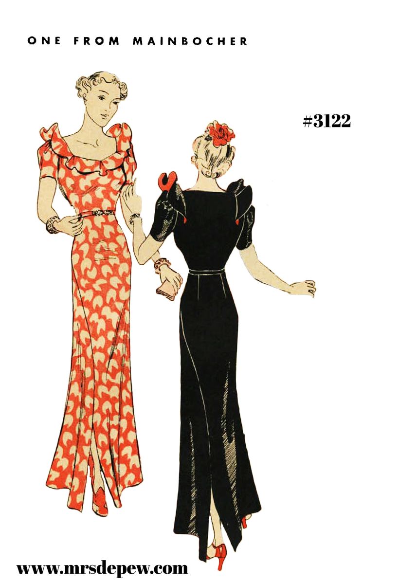 Vintage Dress Sewing Pattern 1930s Ladies Mainbocher Designer Evening Gown 3122 Paper Pattern