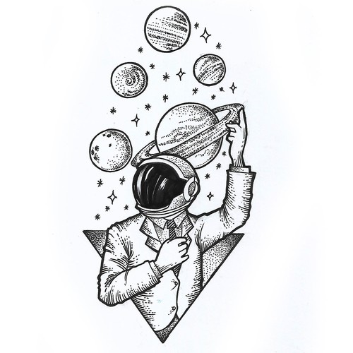 Fine Line Dotted Astronaut In Suit Tattoo Tattoo Contest 99designs
